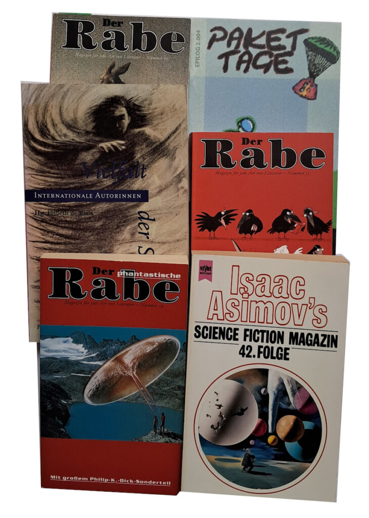 Im Literaturmagazin Der Rabe, in der Jungen Welt, Isaac Asimov’s Science Fiction Magazin und anderen Magazinen und Anthologien